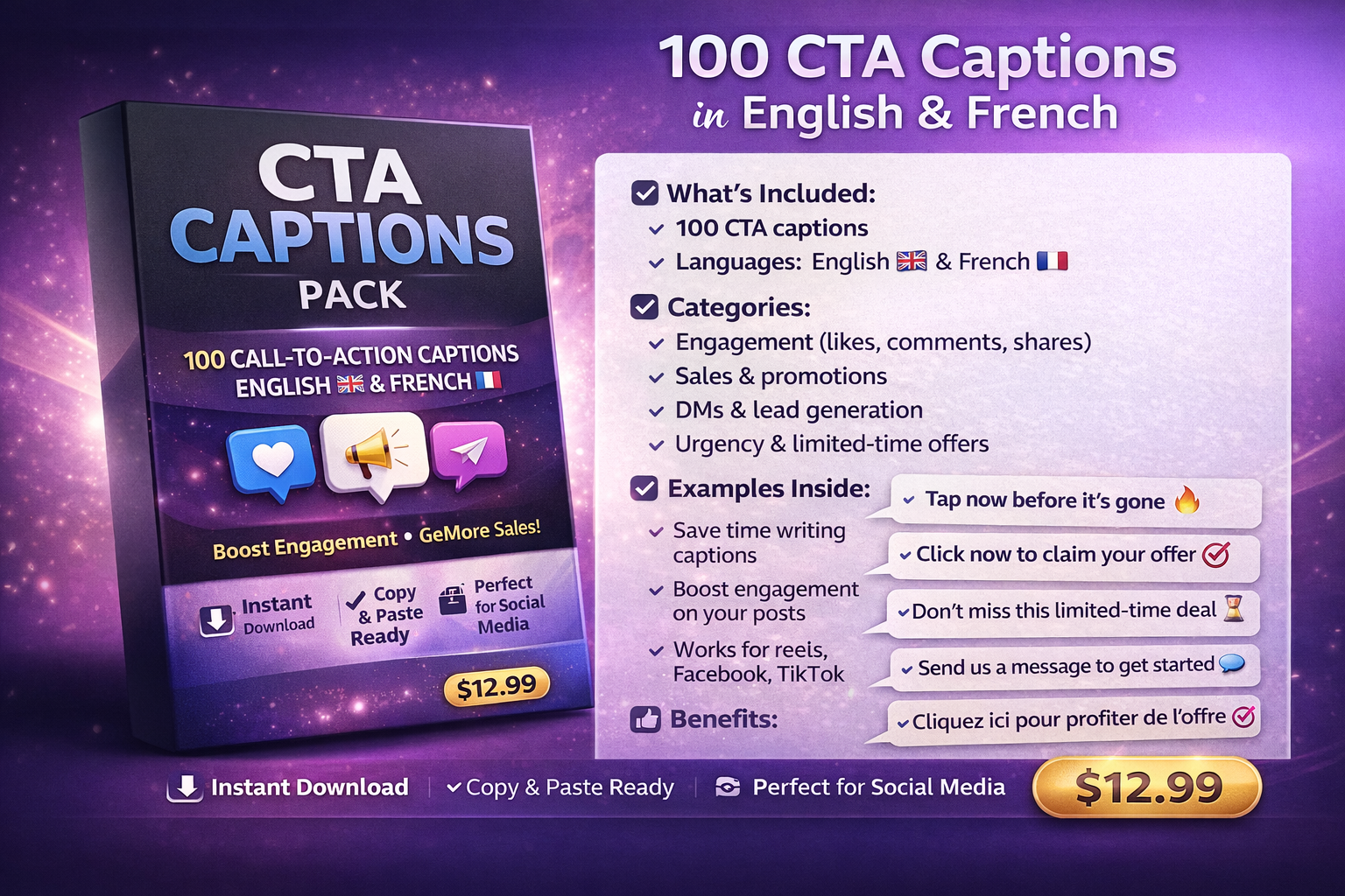100 high-converting call-to-action captions in English and French to boost engagement, clicks, and sales on your social media.